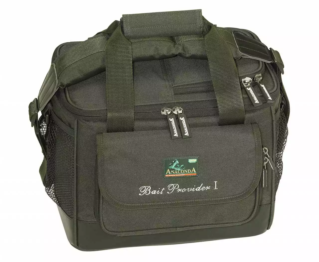 An den Seiten ist je eine Netztasche und an der Vorderseite ist auch noch eine Tasche für Kleinutensilien angebracht. Tragegriffe und Schultergurt lassen den Bait Provider problemlos mobil werden.