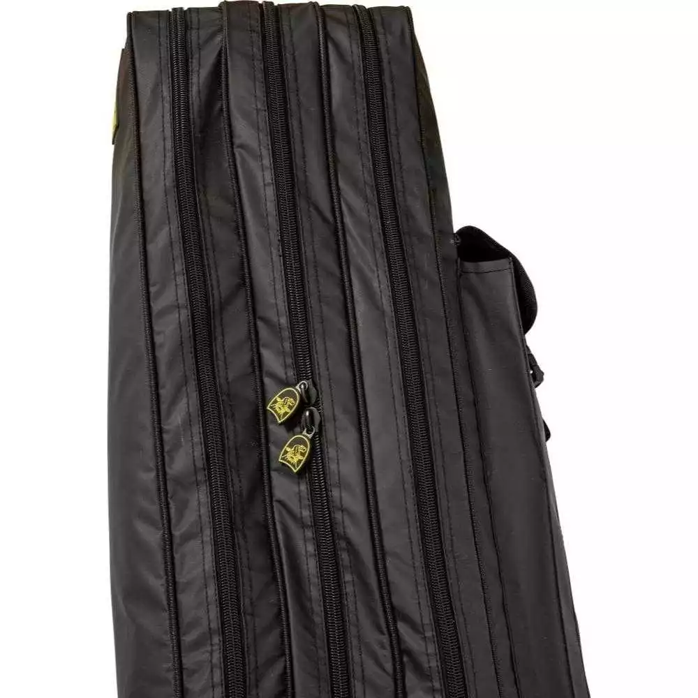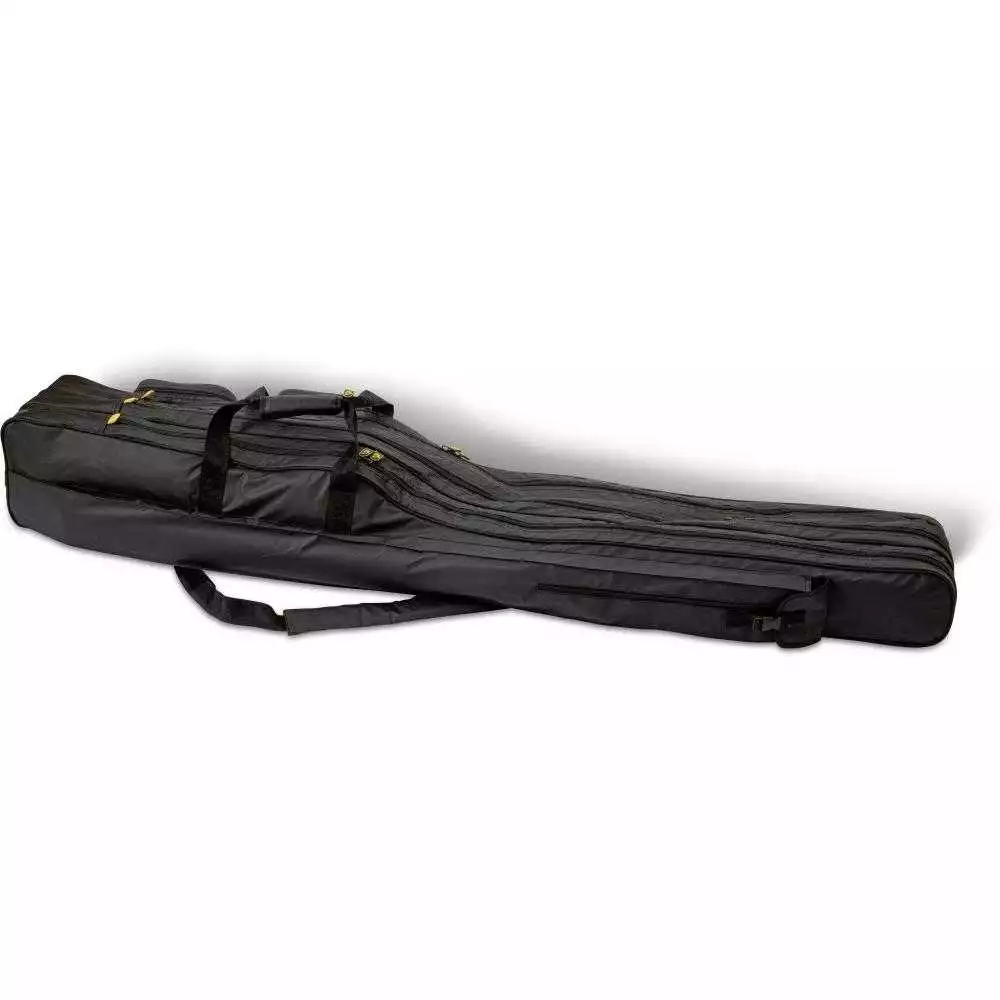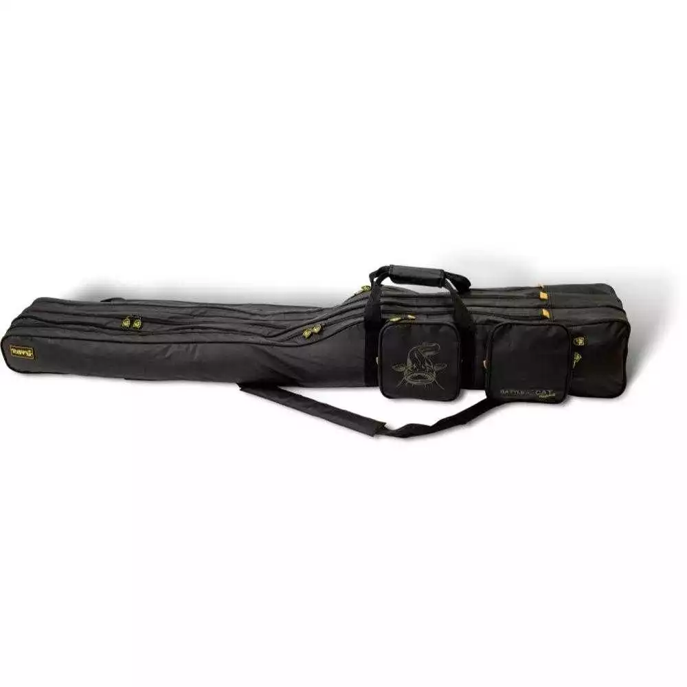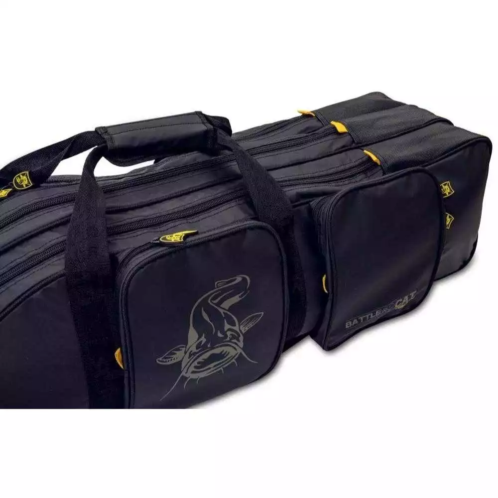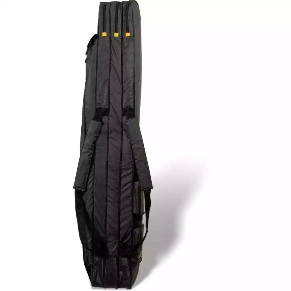 Robuste Ruten-Transporttasche für bis zu drei montierte Welsruten mit großer Rollenausbuchtung. Die erweiterte Polsterung sorgt für optimalen Schutz der Angelrute. Ein starker und sauber schließender Reißverschluss auf der Rückseite vermeidet Schnurverhedderung.
