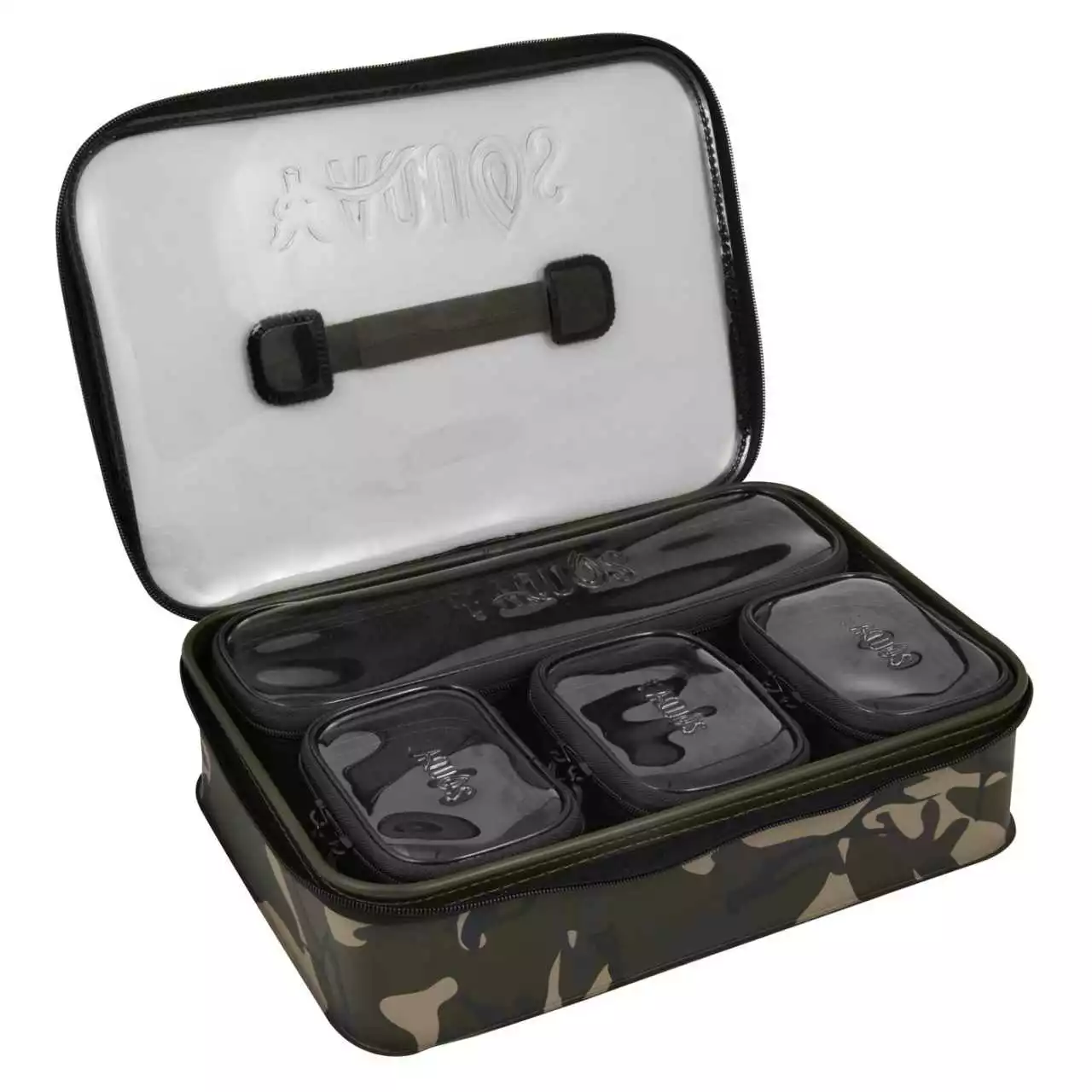 Auf den zweiten Blick entdeckst du, dass die vier khakigrünen Zubehörtaschen, sowie die Camolite Haupttasche mit rauchgrau gefärbten Klarsichtdeckeln ausgestattet sind. Durch die durchsichtigen Deckel hast du sofort einen Überblick über den Inhalt der einzelnen Bags.