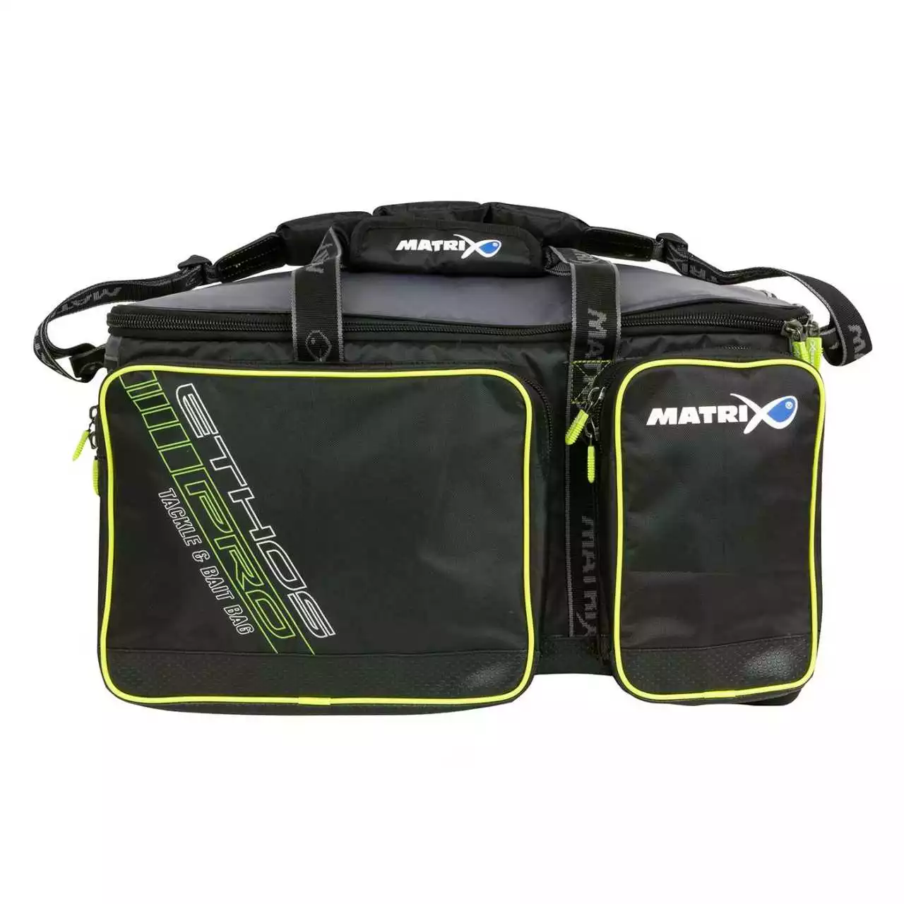 Die Ethos Pro Tackle & Bait Bag ist größer als Standard-Ködertaschen. Somit reicht der Stauraum aus, um auch große Mengen an Ködern oder Pelletpumpen aufzunehmen. Zusätzlicher Stauraum wird dir durch zwei Außentaschen geboten, welche du mit einem Reißverschluss öffnen oder schließen kannst.