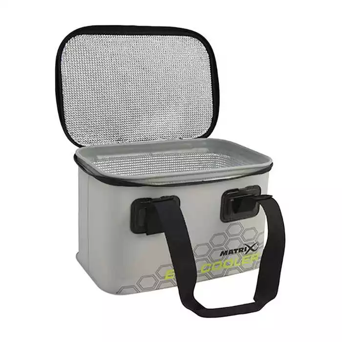 Die Fox Matrix EVA Cooler Bag Light Grey eignet sich ideal zum Lagern von größeren Futtermengen. Durch die hellgraue Farbe der Tasche wird das Sonnenlicht reflektiert und die Tasche bzw. der Inhalt erhitzt sich nicht so leicht. Um für zusätzliche Kühlung zu sorgen ist der Innenbereich mit Folie ausgekleidet.