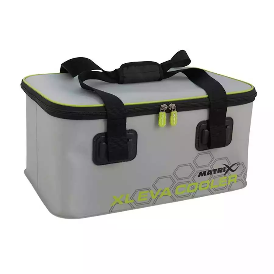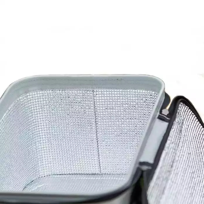 Die Fox Matrix EVA XL Cooler Bag Light Grey eignet sich ideal zum Lagern von größeren Futtermengen. Durch die hellgraue Farbe der Tasche wird das Sonnenlicht reflektiert und die Tasche bzw. der Inhalt erhitzt sich nicht so leicht. Um für zusätzliche Kühlung zu sorgen ist der Innenbereich mit Folie ausgekleidet.