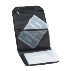 In das Hauptfach passen zwei Boxen der Größe 35 x 22 x 4 cm (nicht im Lieferumfang). Des Weiteren verfügt der Back Pack noch über ein Fach auf der Vorderseite und zwei seitlich angebrachte Netzfächer, die z.B. Getränkeflaschen aufnehmen können.