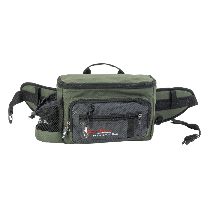 Die Plain Bag NX II von Iron Claw ist mit zwei Boxen ausgestattet & als Bauchtasche aufgebaut. Zudem hat die Tasche eine aufgesetzte Fronttasche, einen Getränkehalter und ein dehnbares Spiralband um z.B. eine Arterienklemme schnell griffbereit an der Frontseite zu befestigen.