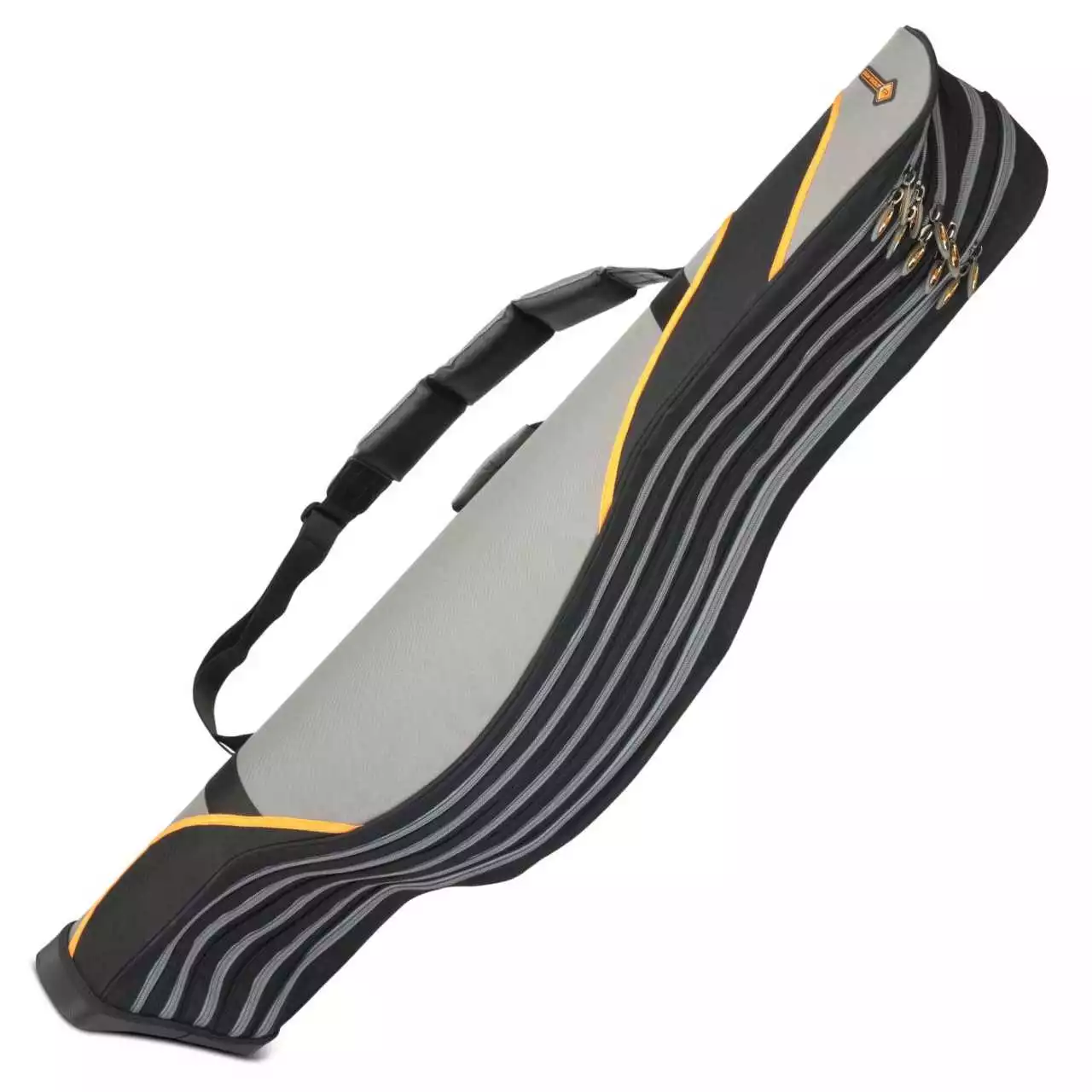 Das Magnum Rod Bag ist mit einzelnen Unterteilungen ausgestattet und bietet Platz für bis zu 5 fix und fertig montierte Angel- & Forellenruten, mit samt zugehörigen Rollen.