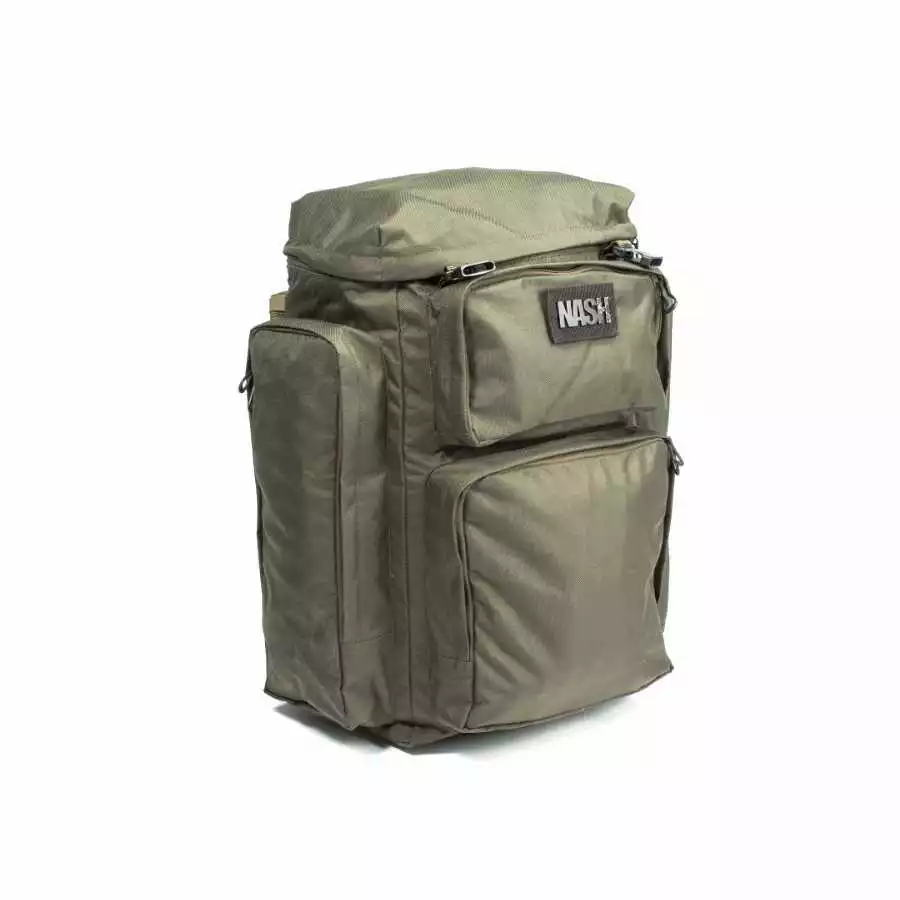 Der Nash Rucksack ist ein sehr geräumiger kompakter 60-Liter-Rucksack. Dieser besitzt neben dem Hauptfach noch zusätzlich fünf Außentaschen, jedoch sind alle mit Reißverschluss versehen. Für einen bequemen Tragekomfort sorgt der versteifter Rücken mit Schaumstoffpolsterung und Lordosenstütze für die Lendenwirbel. Bist du Unterwegs unterstützen dich außerdem ergonomisch gepolsterte Schulter- und Hüftgurte. Insgesamt sorgt dieser Tragekomfort für eine viel größere Reichweite bei der Pirsch.