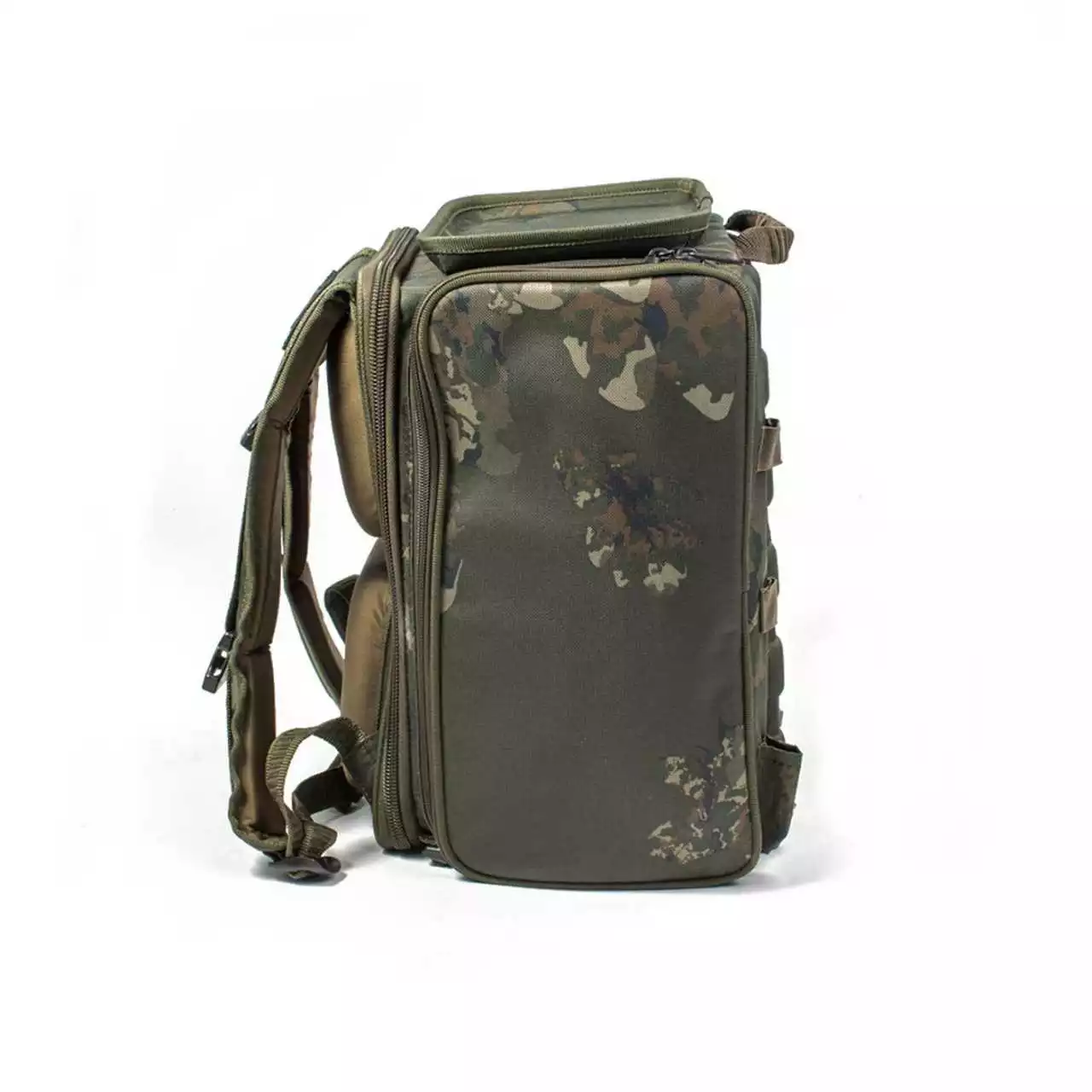 Eine weitere Besonderheit ist das magnetische Bivvy Tray. Wenn du die gepolsterten und verstellbaren Schultergurte wegklappst kannst du eine gerade Fläche schaffen die als Tisch für den Tray dient. Somit sind alle essenziellen Dinge wie Hakenköder oder Vorfächer immer schnell zur Hand. Oder du befestigst den Tray mittels Magneten an der Oberseite des Rucksackes, wenn dieser freistehend verwendet wird.