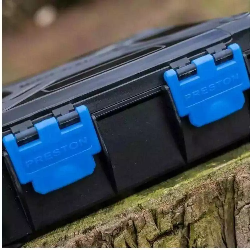 21 Spulen werden in einer Aufbewahrungsbox geliefert, die einen halbtransparenten Deckel hat, der dazu beiträgt, Licht aus der Box zu entfernen. An der Innenseite des Deckels können Aufkleber angebracht werden, um die Spule leichter zu identifizieren.