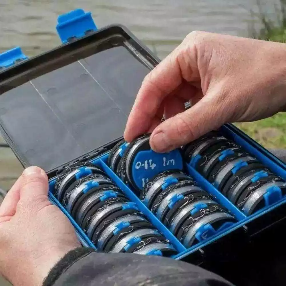 Das Revalution-Aufbewahrungssystem hat im Vergleich einen großen Unterschied: EVA-Spulen sind die beste Art, lange Vorfächer aufzubewahren, aber jetzt sind mit dem rotierenden Kunststoffstift sind keine weiteren Stifte erforderlich.