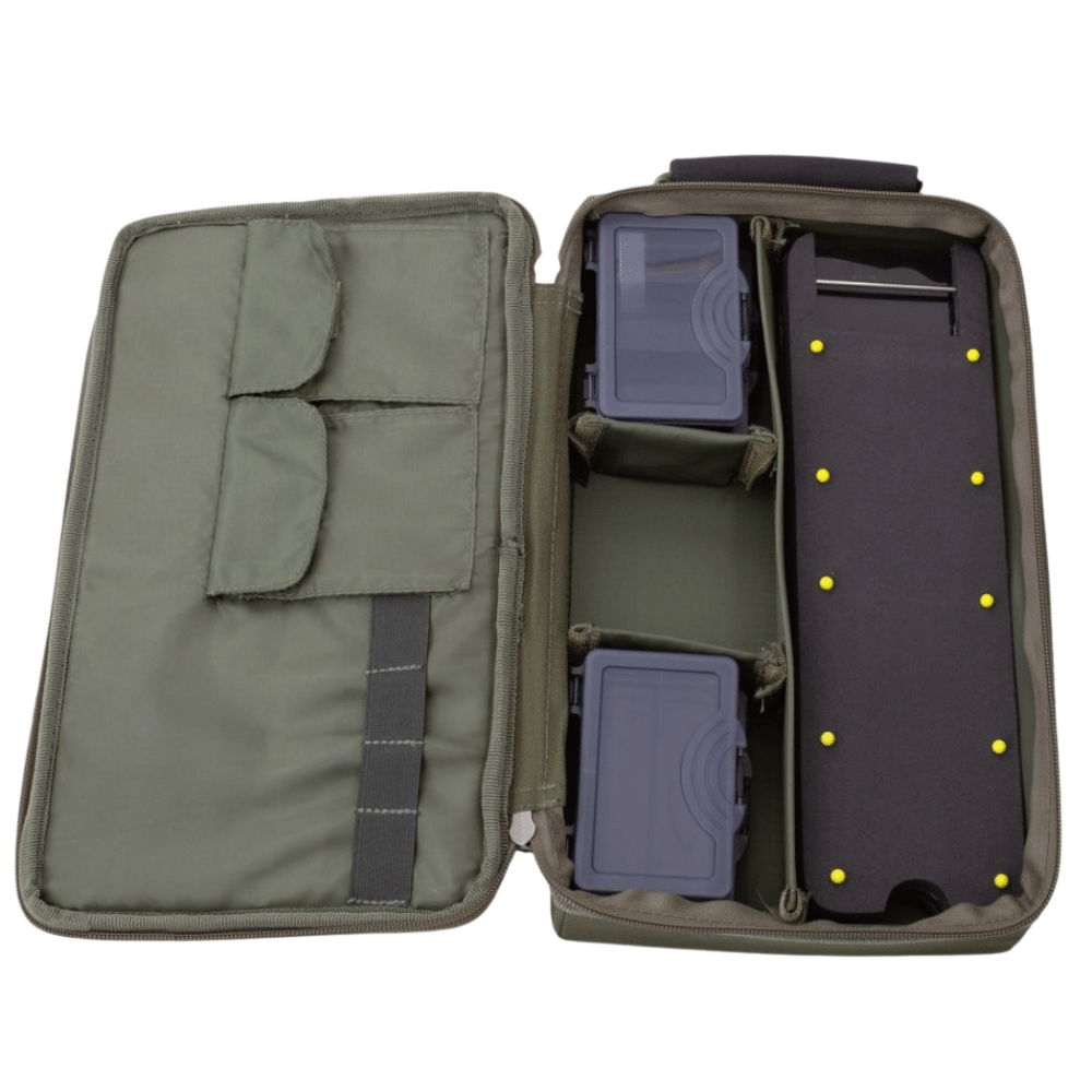 In dieser Tasche sind die sensiblen Kleinteile, die für den Erfolg am Wasser wichtig sind, ideal und zuverlässig geschützt. Die Tasche verfügt über einen rundumlaufenden Reißverschluss mit klappbarem Deckel, für einen schnellen Überblick. Die Segmentierung in der Tasche ermöglicht es, alles optimal zu verstauen.