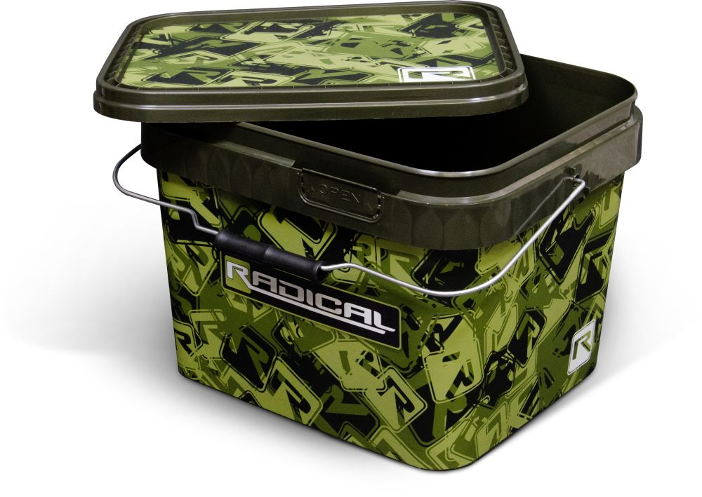 Klassischer Eimer im Tarndesign. Ein stabiler Metallbügel inklusive eines Fingerschutzes macht die Ausstattung komplett. Der Deckel (im Lieferumfang enthalten) schließt sicher – selbst bei Transport von Flüssigkeiten.
