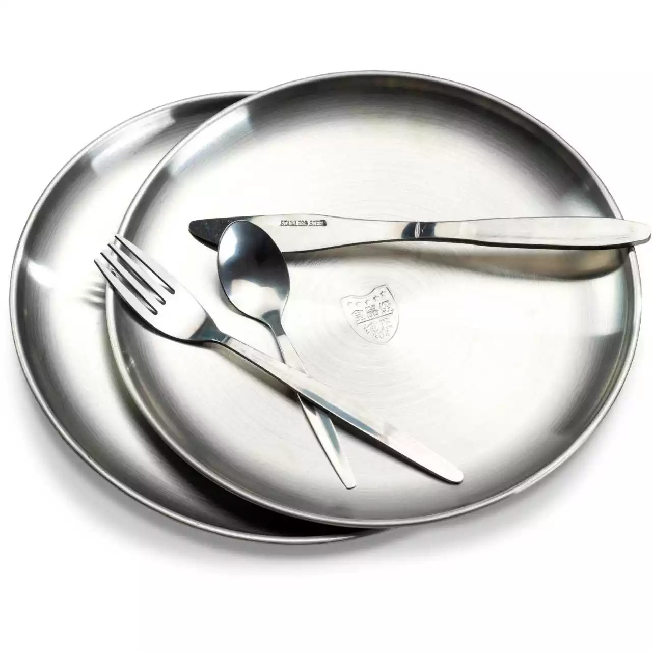 - Edelstahlbesteck in Fronttasche (2 x Teller, 2 x Messer, 2 x Gabel, 2 Teelöffel + 1 x Handtuch)
