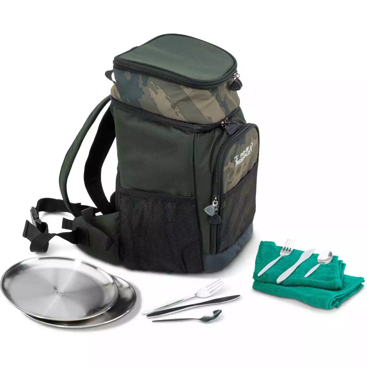 So beinhaltet der Freelancer Prime Survival Hopper 2 x Edelstahl Gabeln, 2 x Edelstahl Messer, 2 x Edelstahl Teelöffel + ein Handtuch. In insgesamt 2 Kühlfächern (oben und unten), werden Nahrungsmittel und Köder aufgrund der dicken Isolation gut gekühlt. Ein gepolsterter Rückenbereich und ein gepolsterter Tragegurt sowie eine extra Polsterung im Nierenbereich garantieren höchsten Tragekomfort.