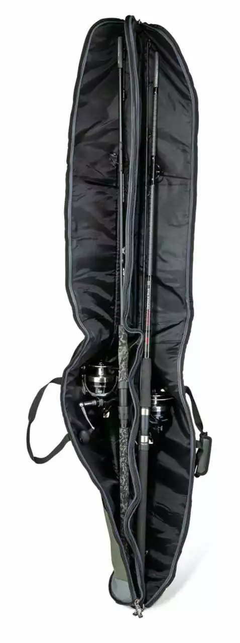 Im brandneuen Look kommen nun die innovativen Uni Cat Double Rod Sleeves aus nahezu wasserdichtem Material mit hochwertigsten Reißverschlüssen daher. Diese Futterale dienen dazu, hochwertige Wallerruten einzeln zu transportieren. Sie wurden so dimensioniert, dass zwei 11,5ft-Ruten mit den größten Stationärrollen-Modellen problemlos hineinpassen.