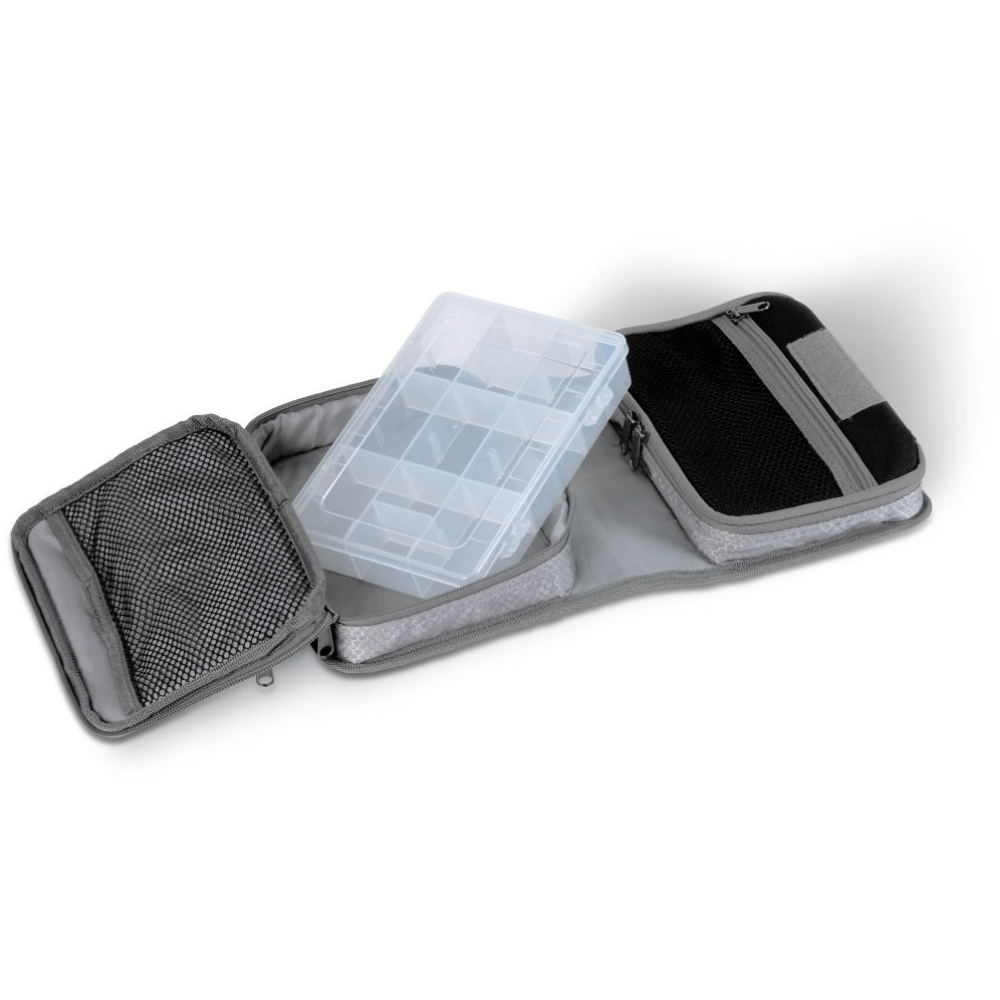 Das Uni Tackle Bag ist eine vielseitige Zubehörtasche zum Transport von Angelmontagen in separaten Foldern und Kleinteilen in einer mitgelieferten Kleinteileschachtel. Mit Reißverschluss und einem Tragegriff.